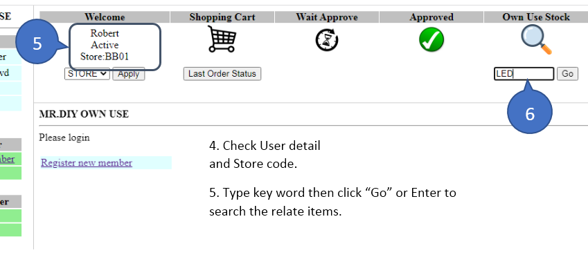 6. Type keyword for searching own use item then enter or click Go. | ![]() |