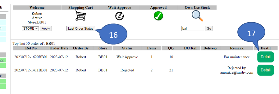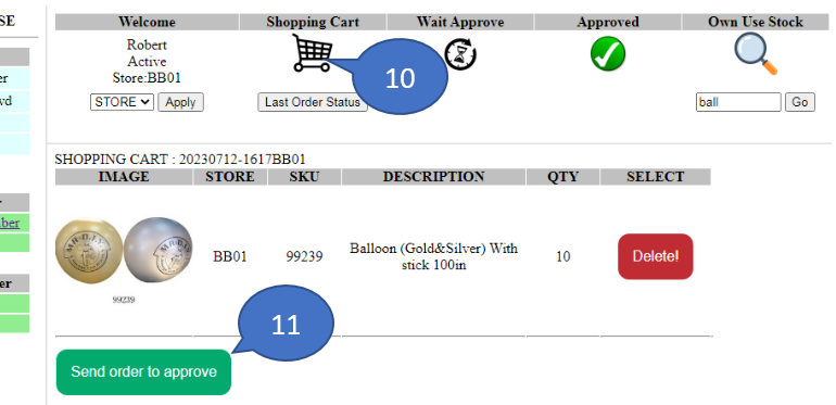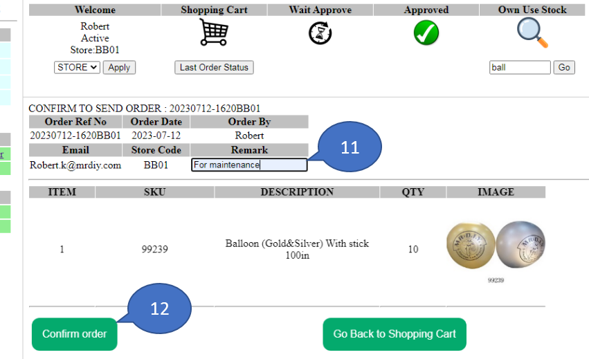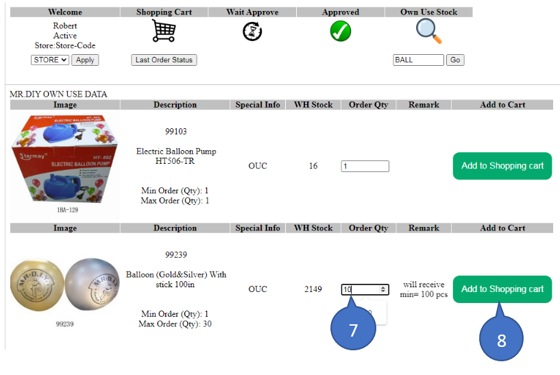 7. If found the own use item then change Qty to order in range of Min-Max. |